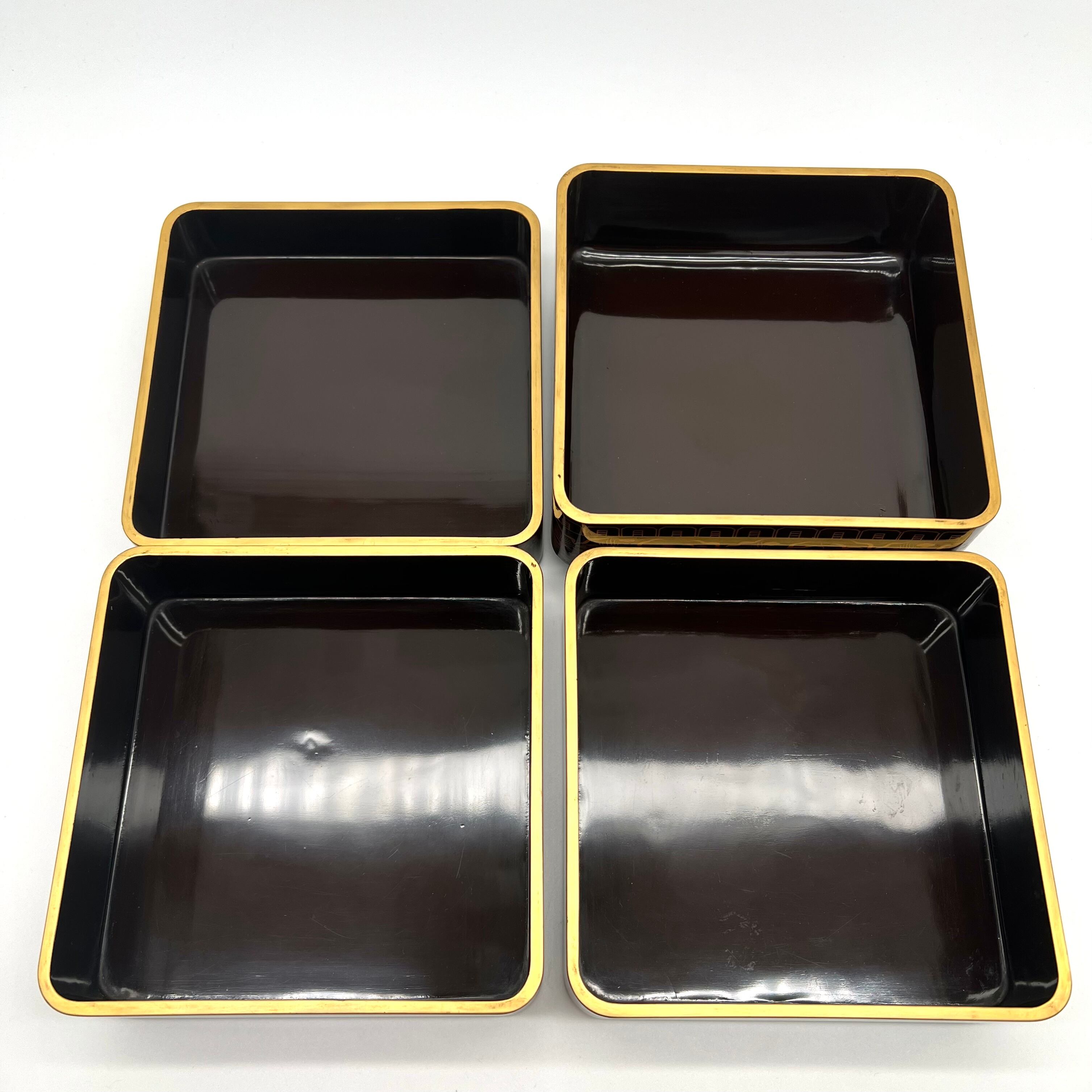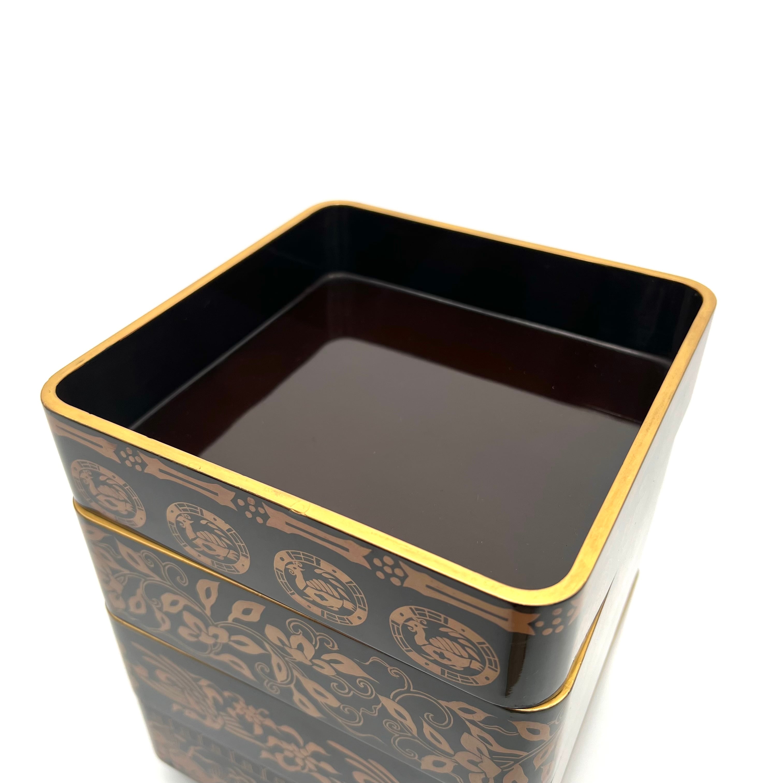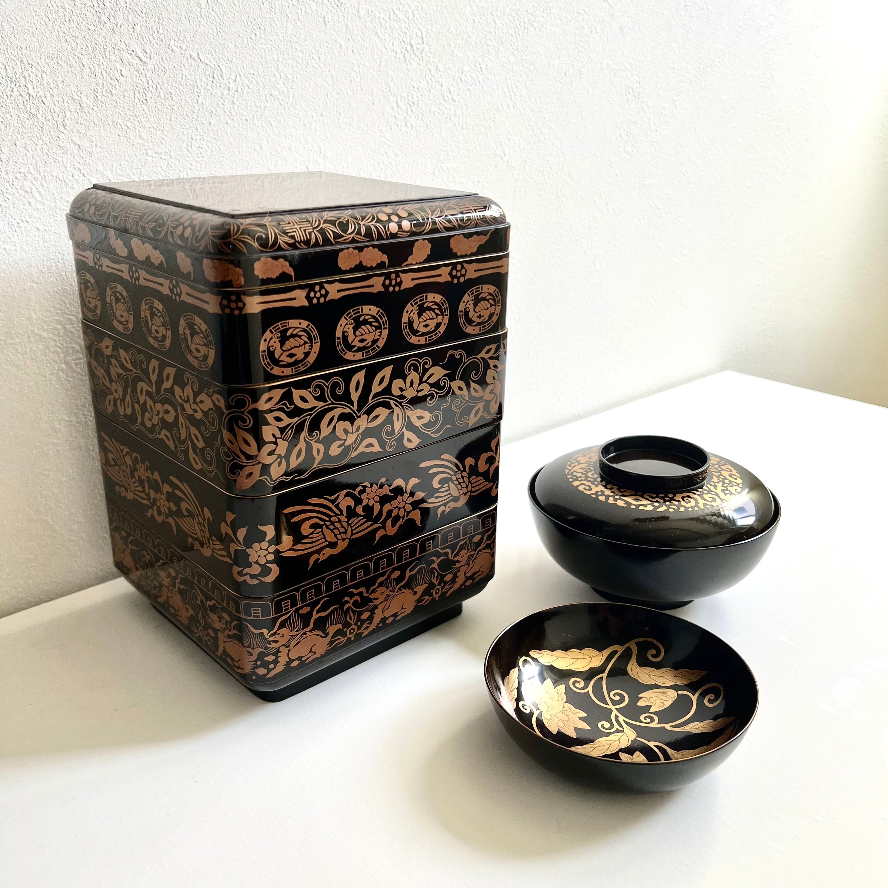 黒地 古代四神文蒔絵 菓子重箱
